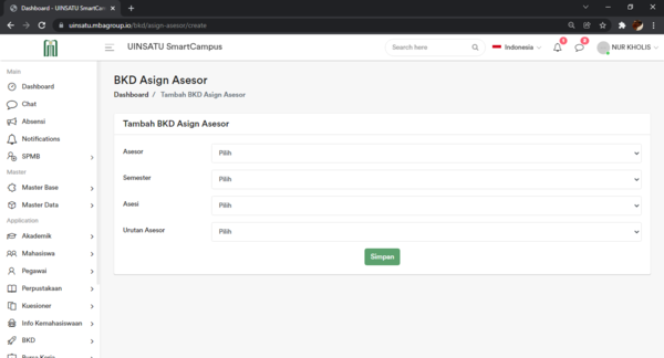 Setelah selesai mengisi form - form input yang disediakan, klik tombol Simpan untuk menyimpan informasi BKD Asign Asesor dalam database