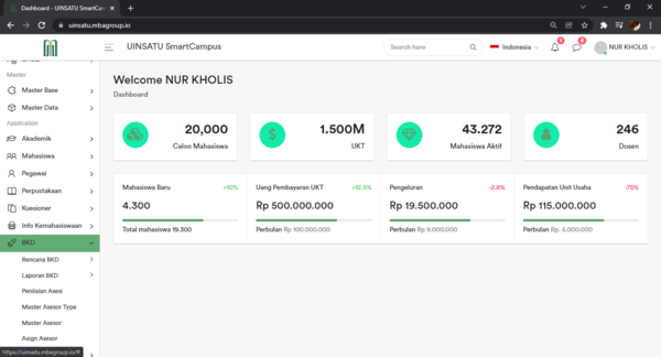 Tampilan halaman utama Sistem Informasi BKD adalah sebagai berikut: