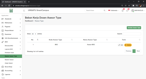 Untuk Admin Sub Menu yang dimiliki oleh Admin adalah 1. Master Asesor Type 2. Master Asesor 3. Asign Asesor